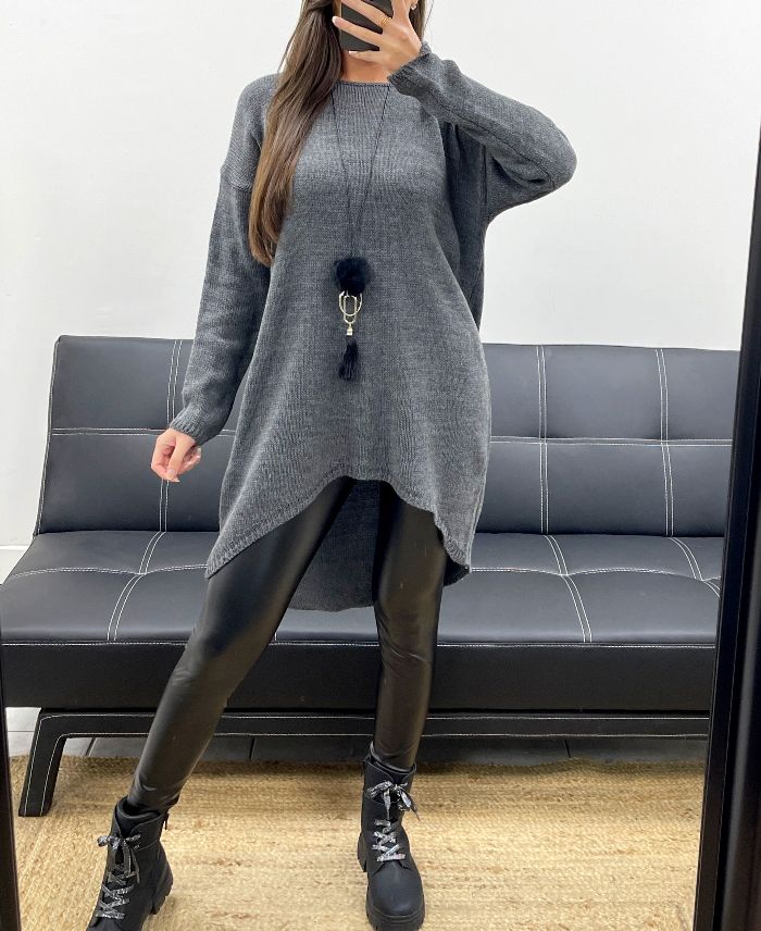 MAGLIA LUNGA OVERSIZE ASIMMETRICA + GUSCIO AH255254 GRIGIO
