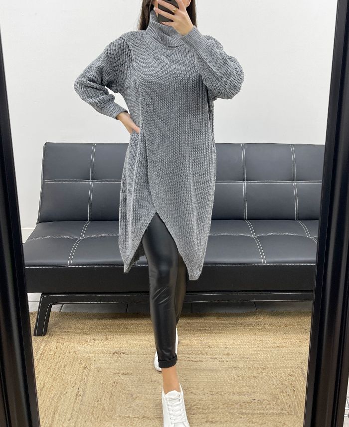 MAGLIA LUNGA DRAPPEGGIATA AH250609 GRIGIO
