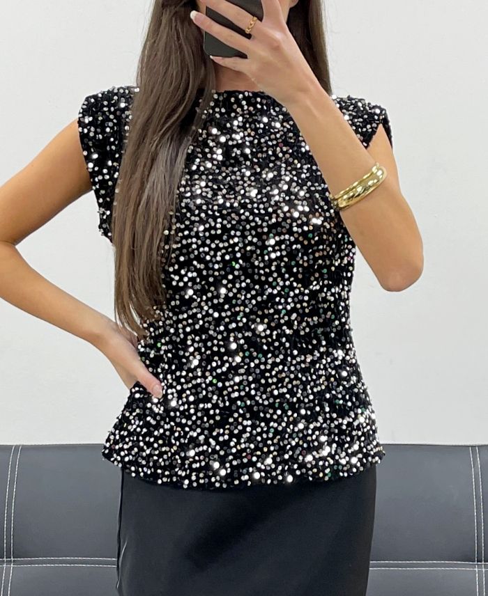 TOP IN VELLUTO DI PAILLETTES AH250640 ARGENTO