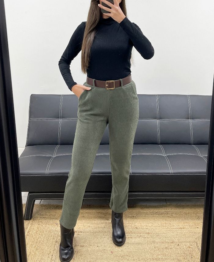PACK 5 PANTALONI IN VELLUTO 2 TASCHE + CINTURA S-M-L-XL-XXL AH250641 KAKI