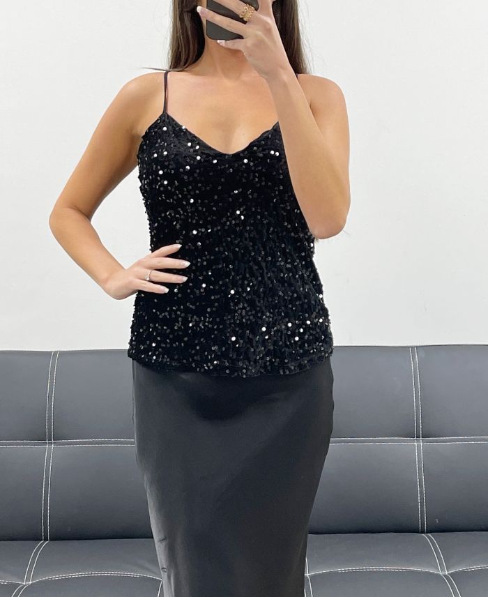 TOP TOP CON CINTURINO IN PAILLETTES NERE AH250664