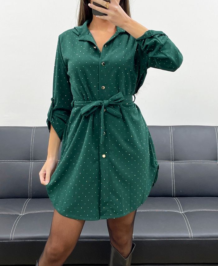 ABITO TUNICA BORCHIATA + CINTURA AH250701 VERDE