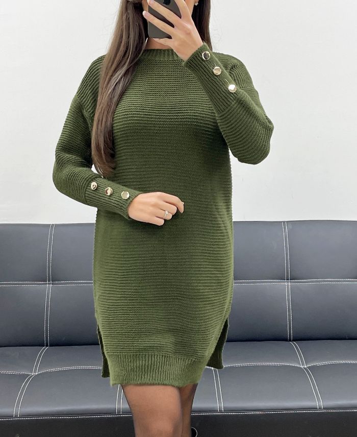ABITO MAGLIONE TAGLIE FORTI CON MANICHE A BOTTONI AH250707 KAKI
