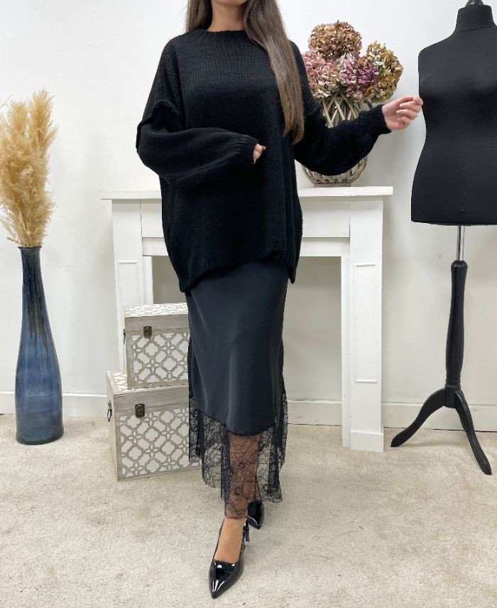 GONNA LUNGA IN RASO DI PIZZO AH250718 NERA