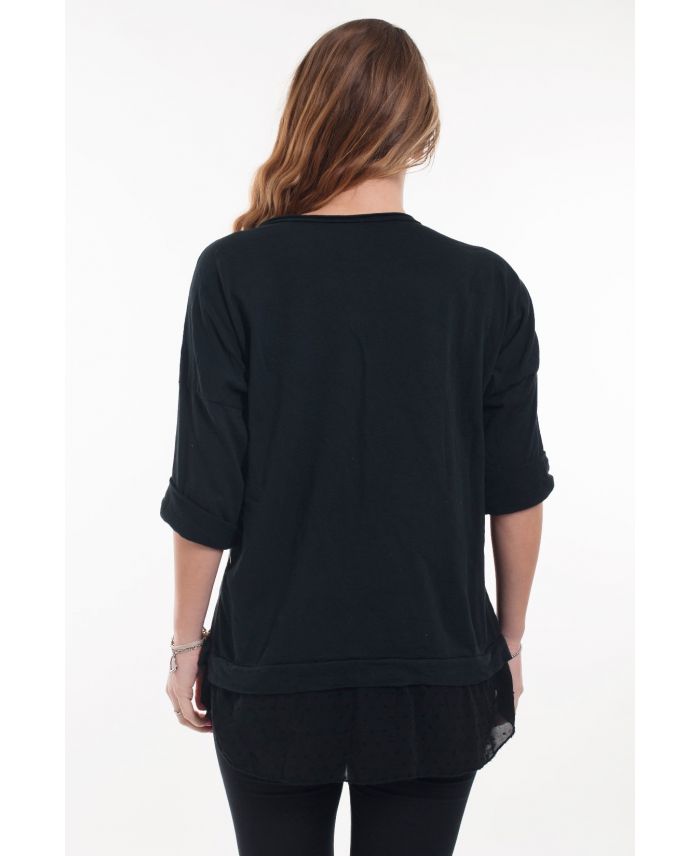 cliquez-iciDI GRANDI DIMENSIONI T-SHIRT STAMPA BI-MATERIA 6066 NERO