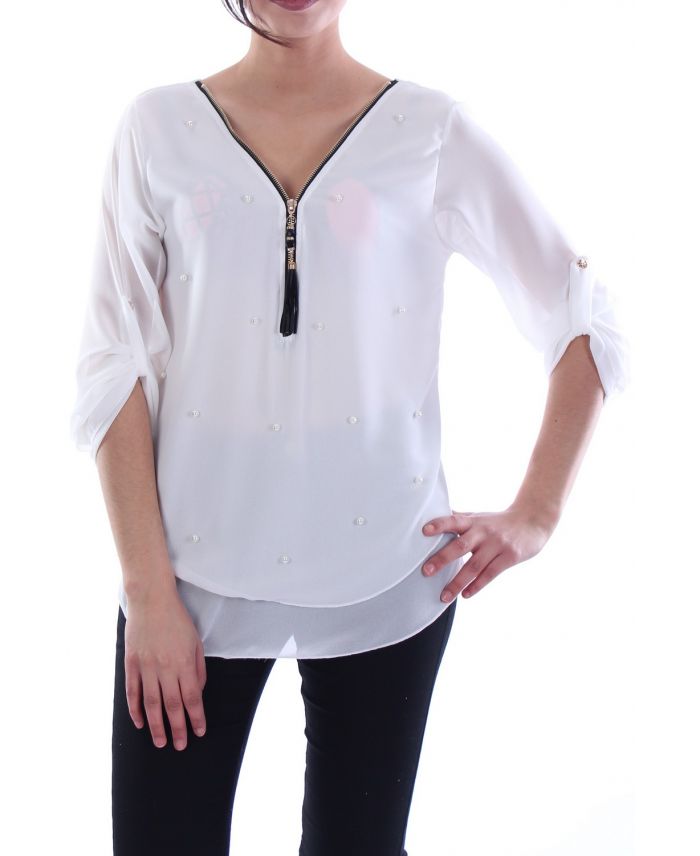 cliquez-iciTOP ZIP PERLE INDIETRO ATTRAVERSA 7043 BIANCO