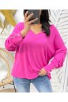 MAGLIA CON SCOLLO A V E MANICHE CON BOTTONI PE379 FUCSIA