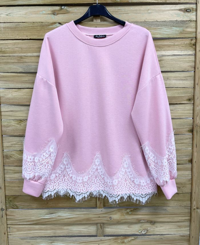 FELPA OVERSIZE IN PIZZO PE2181 ROSA