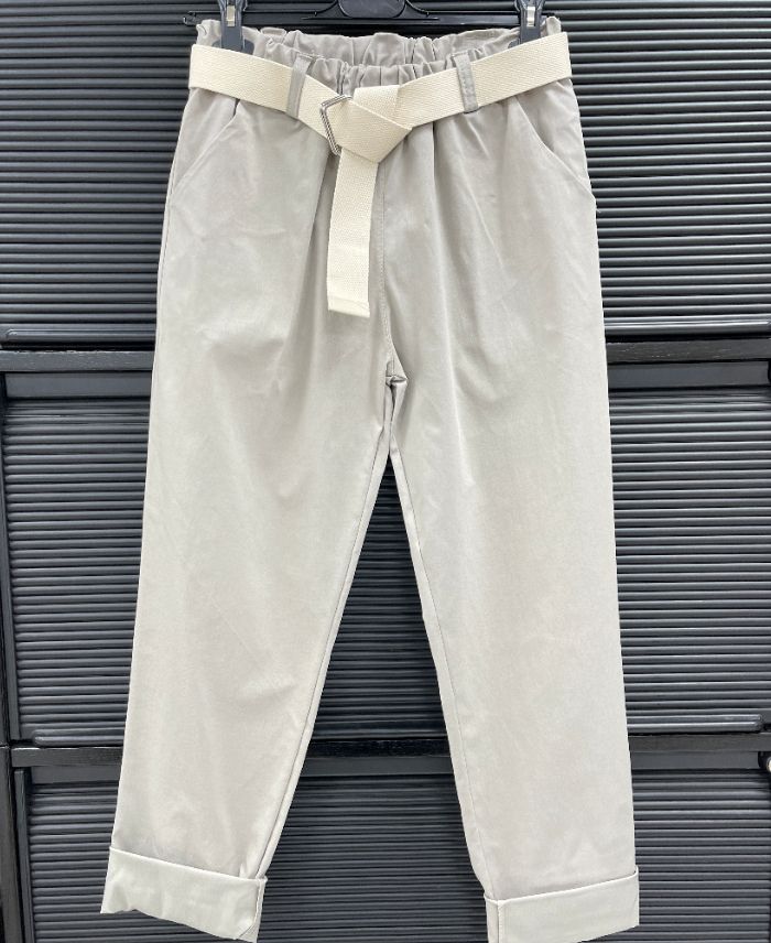 PANTALONI ELASTICI A 2 TASCHE IN VITA + CINTURA BEGE PE2401