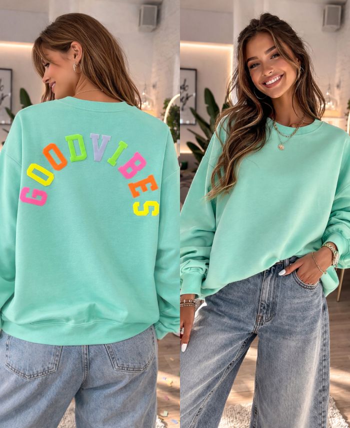 FELPA DI COTONE GOOD VIBES SS2477 VERDE PASTELLO