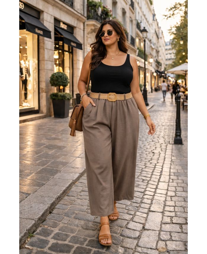 PANTALONI TAGLIE FORTI, CINTURA PE26809 TAUPE 2 TASCHE