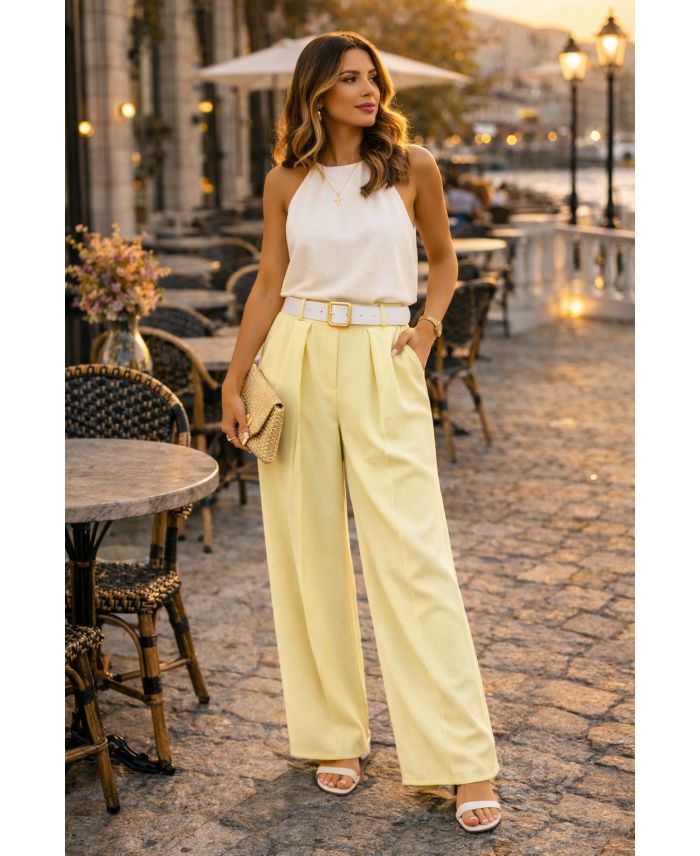 PANTALONI FLUENTI CON CINTURA PE26883 GIALLO