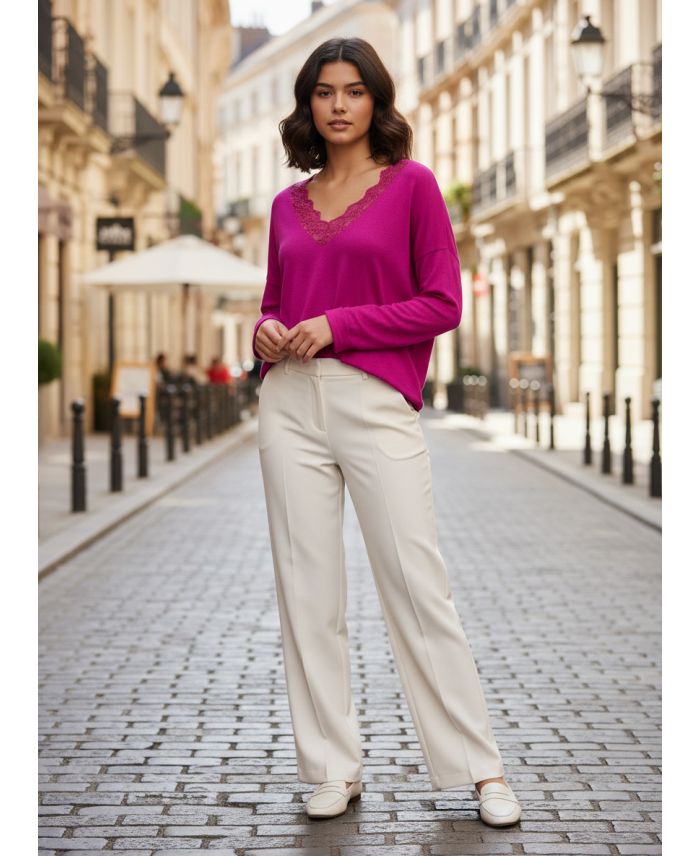 MAGLIONE LEGGERO IN PIZZO PE2125 FUSHIA