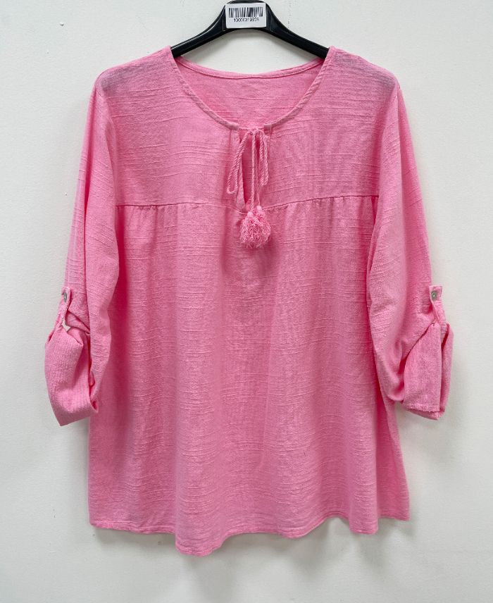 TUNICA DI COTONE CON POMPON PE2168 ROSA