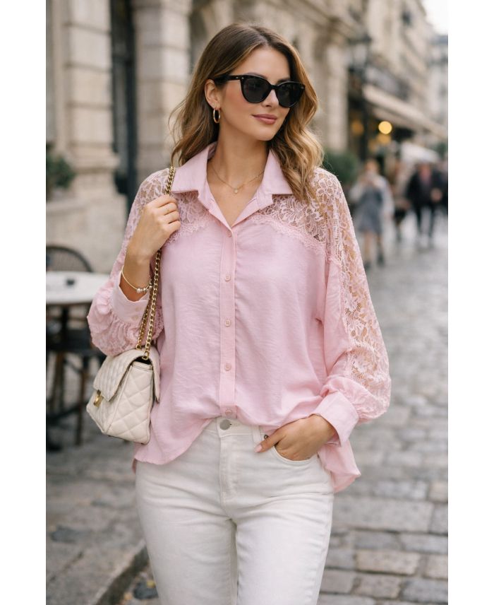 CAMICIA FLUID LACE PE2222 ROSA