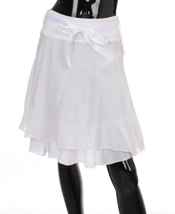 Jupe aux genoux superposée en soie , taille élastique confortable, avec ruban assorti.