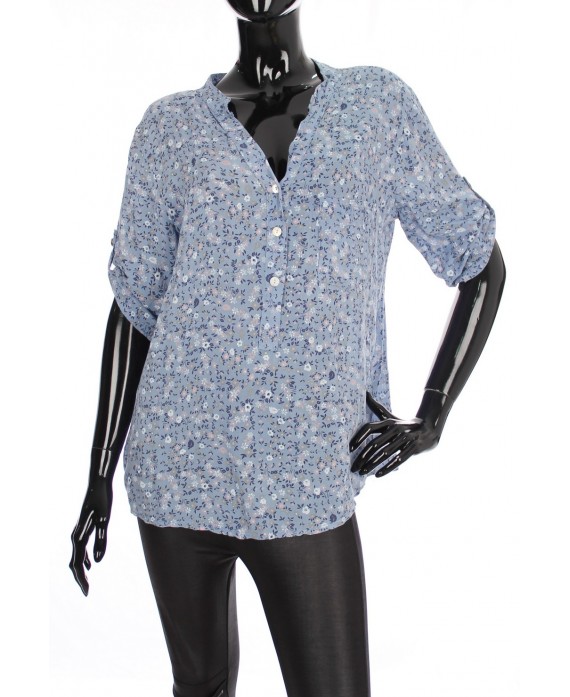 Chemisier fluide fleurie une poche encolure fermeture è boutons.