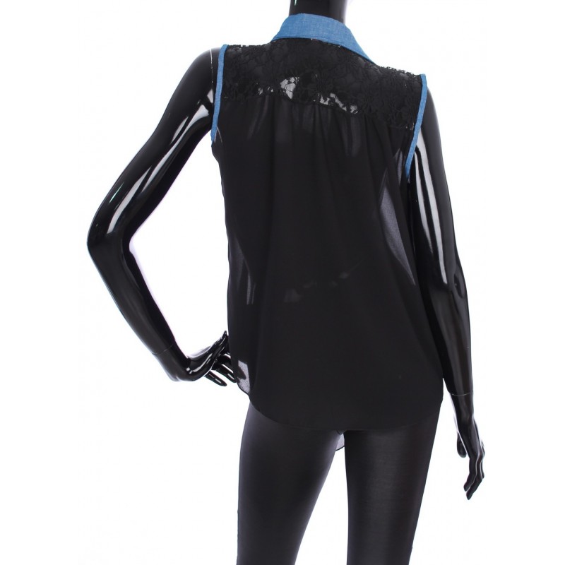 Chemisier empiècement dentelle à nouer, finition effet jeans.