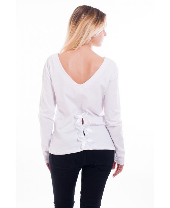 cliquez-iciT-SHIRT TERUG KLEINE KNOOPPUNTEN 5070 WIT