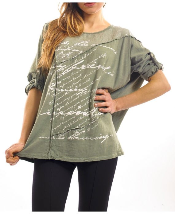T-SHIRT MIX MATIERES S7027 VERT MILITAIRE