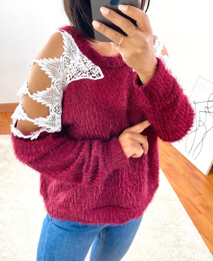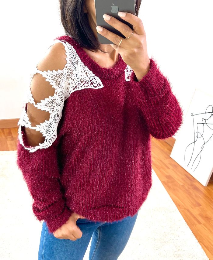 SCHOUDER SWEATER KANT 9168 BORDEAUX