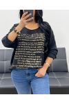 GOUD SCHRIJVEN BI-MATERIAAL T-SHIRT PE0798 ZWART