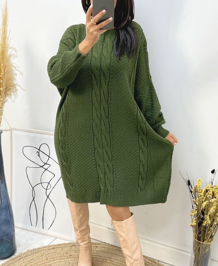 cliquez-iciOVERSIZED KABEL GEBREIDE MAXI JURK AH515 KAKI
