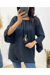 cliquez-iciOVERSIZED TUNIEK MET ELASTISCHE HALSLIJN + GRATIS KETTING FH532 ZWART