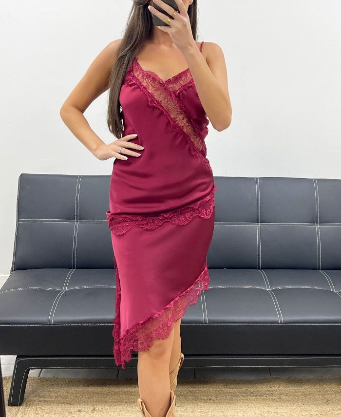 ASYMMETRISCHE KANTEN SATIJNEN ROK AH36284 BORDEAUXROOD