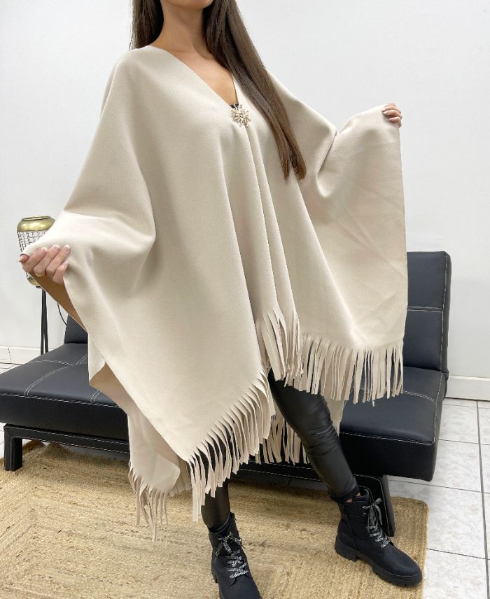 GROOT FORMAAT CAPE MET FRANJES AH36322 BEIGE