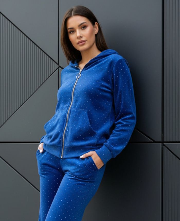 VEST MET CAPUCHON + 2-POCKET BROEK SET FLUWEEL MET STUDS AH36382 KONINGSBLAUW