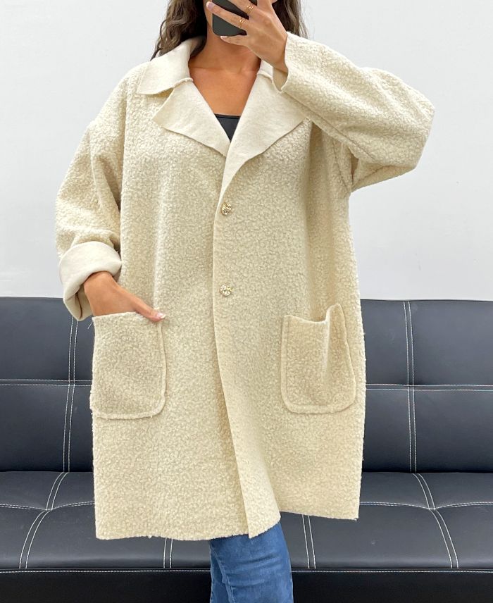 LOSSE WOLLEN JAS MET 2 ZAKKEN AH2555024 BEIGE