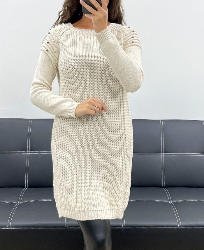GEBREIDE JURK MET KRALEN AH2555094 BEIGE
