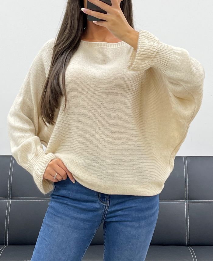 WOLLEN TRUI MET MOUWDETAIL AH5157 BEIGE