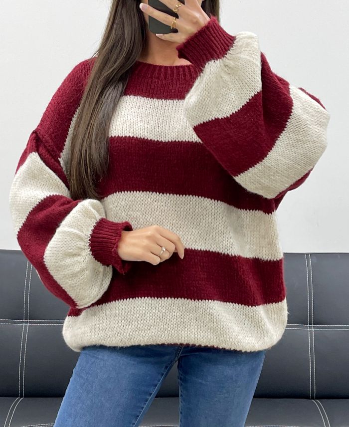 OVERSIZED GESTREEPTE TRUI AH255212 BORDEAUX