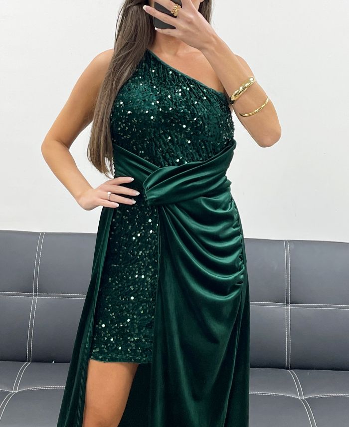 LANGE JURK MET PAILLETTEN FLUWEEL AH250667 GROEN