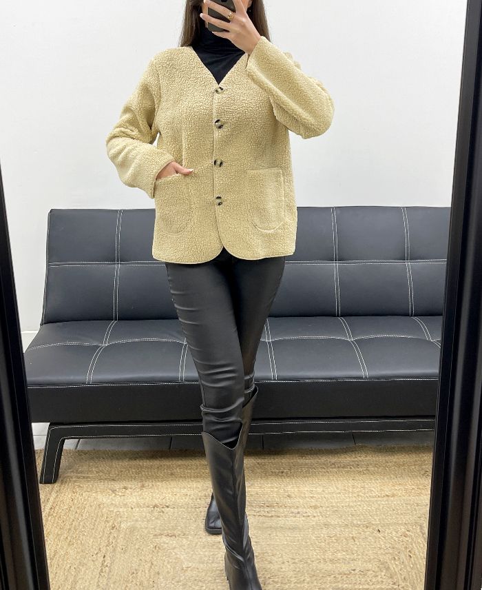 WOLLEN JAS MET 2 ZAKKEN AH250713 BEIGE