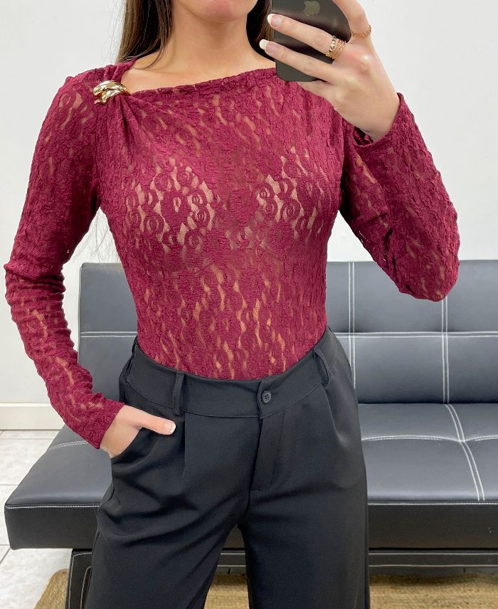 KANTEN BODYSUIT AH250739 BORDEAUXROOD