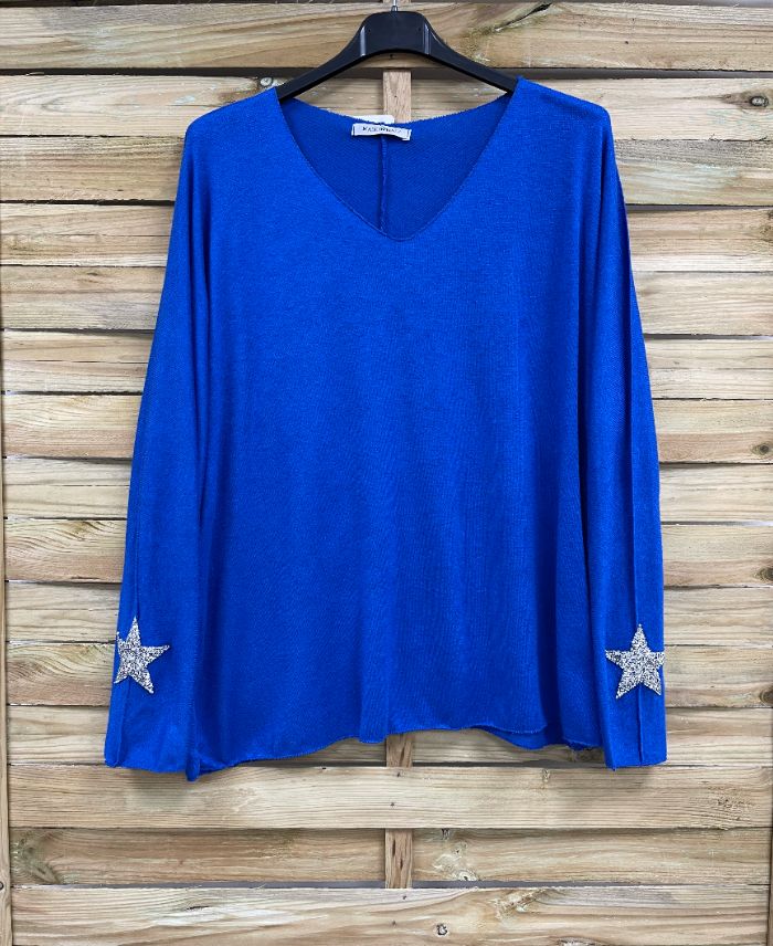 LICHTGEWICHT STRASSSTEEN-STER FLOCKTRUI PE2424 KONINGSBLAUW