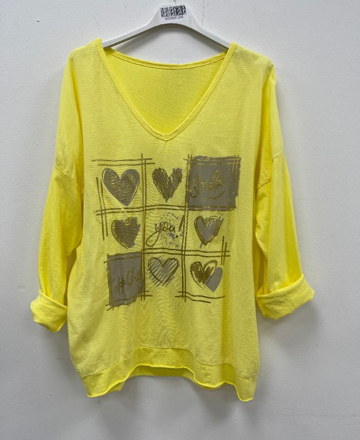 TWEE-MATERIAAL KATOEN-LINNEN T-SHIRT SMILE PE0818 GEEL