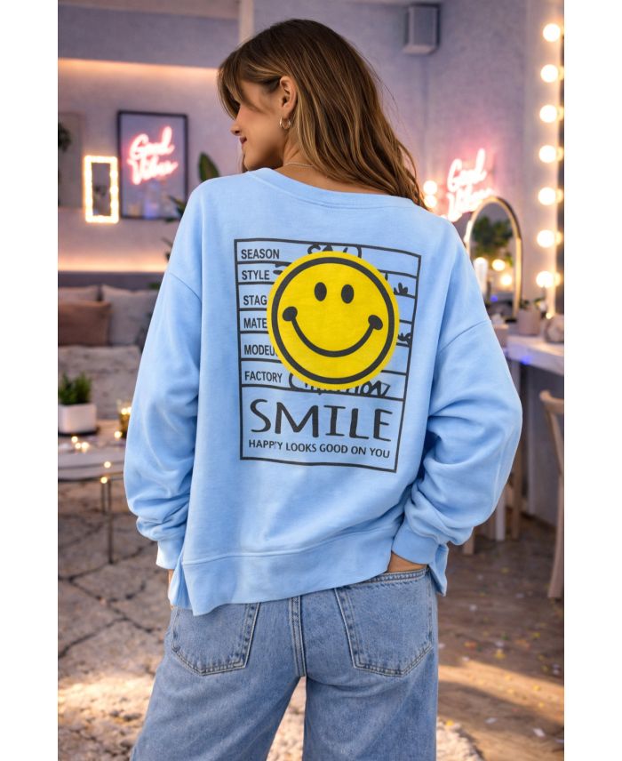 DEVANR/BACK SMILE SWEATSHIRT PE26743 HEMELSBLAUW