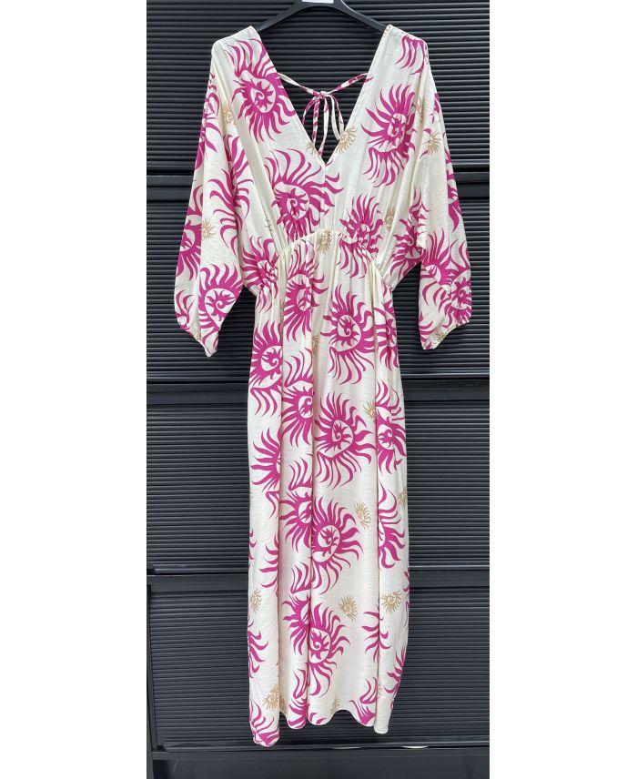 VISCOSE MAXIJURK MET PE260612 FUSHIA-PRINT