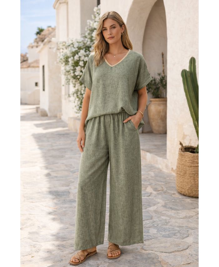 LINNEN TOP SET + 2-ZAK PANTEN PE260654 KHAKI