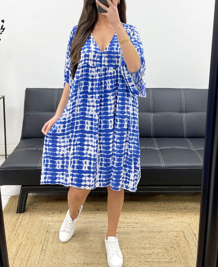 SUKIENKA OVERSIZE Z NADRUKIEM SS1177 ROYAL BLUE