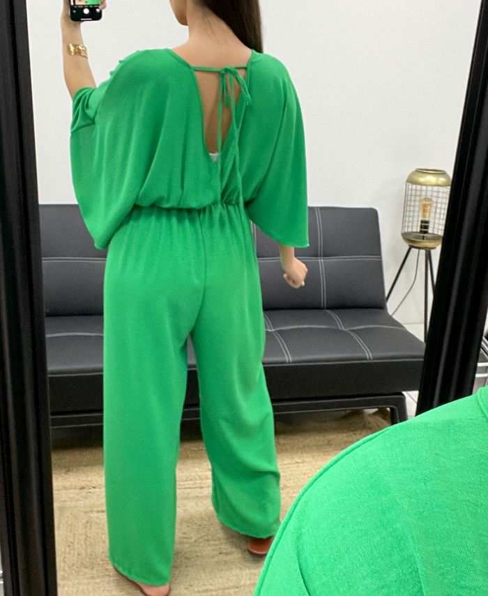 KOMBINEZON Z WIĄZANIEM Z SZEROKIM TYŁEM PE2177 ZIELONY
