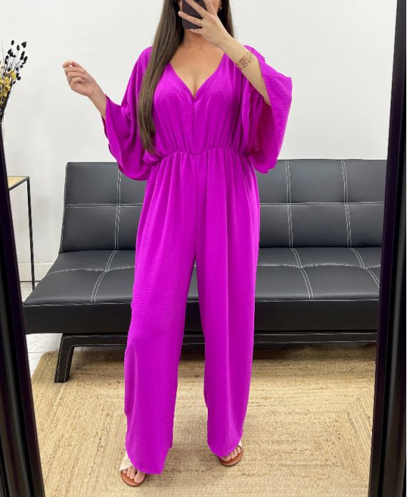 KOMBINEZON Z SZEROKIMI PLECAMI PE2177 FIOLETOWY