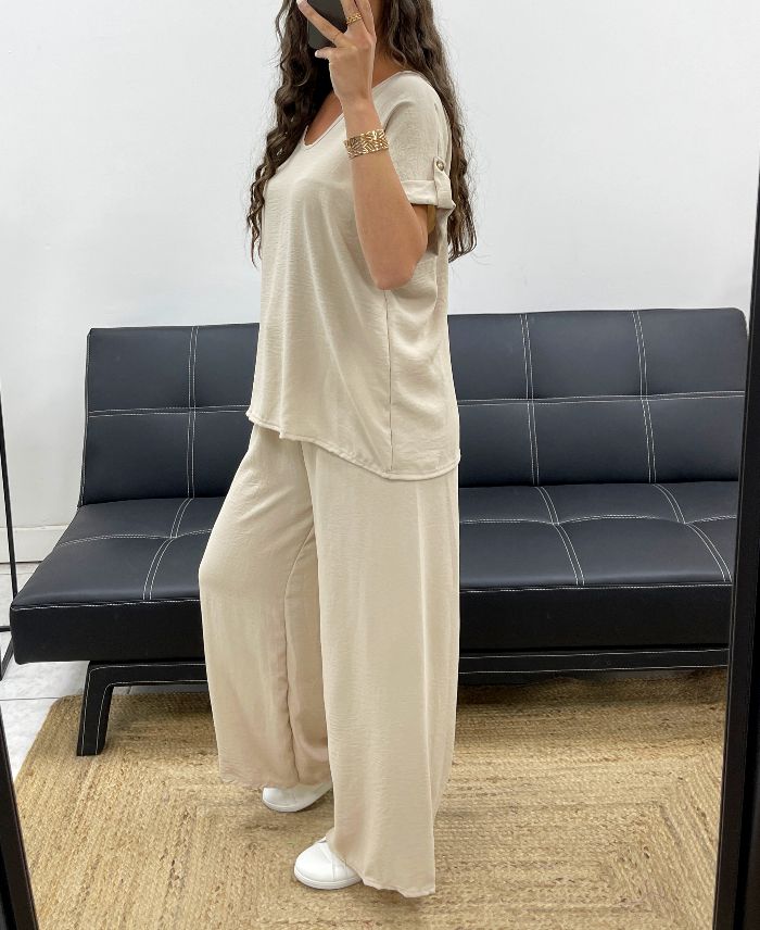 ZESTAW SPODNI Z SZEROKIMI NOGAWKAMI OPEN BACK TOP + JEWEL PE2502 BEŻOWY
