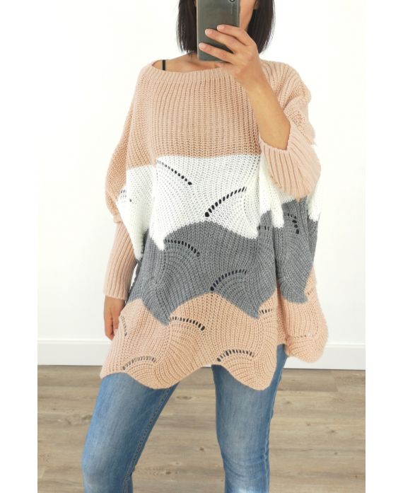 SWETER WEŁNA AJOURE OVERSIZE 3017 RÓŻOWY