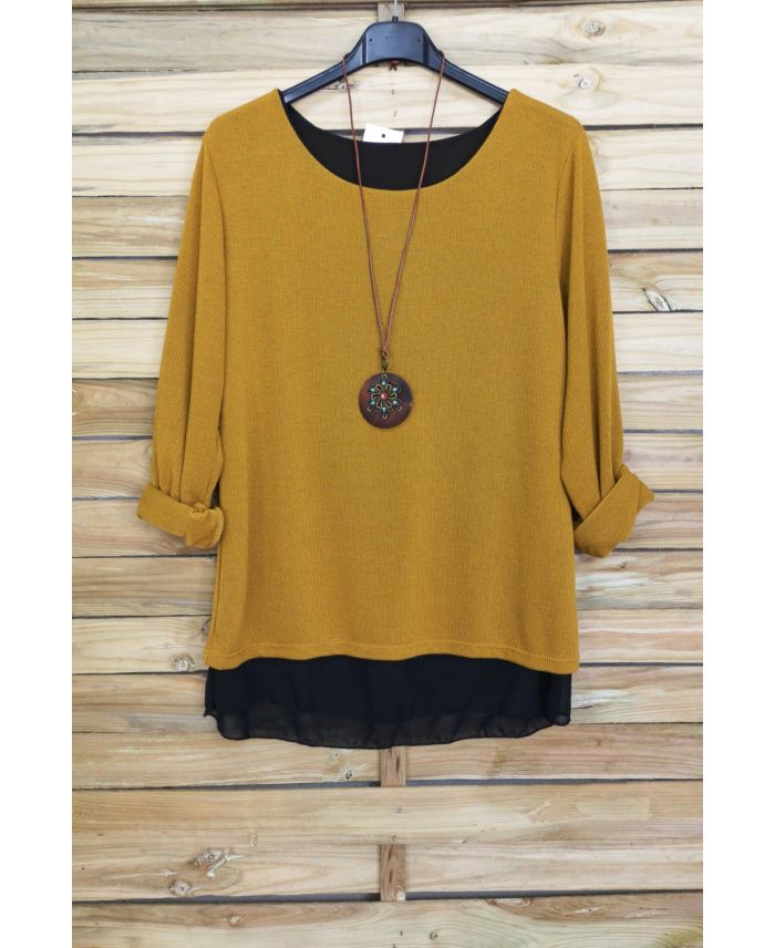 SWETER Z ODKRYTYMI PLECAMI BI-MATIERE + NASZYJNIK JEST OFEROWANA 4029 MUSZTARDY