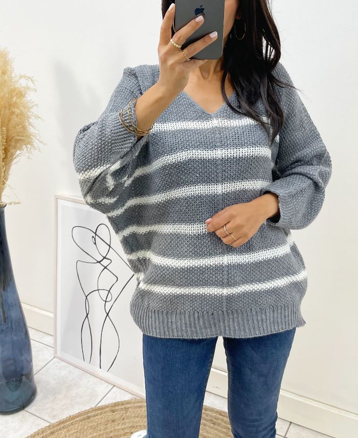 PULOWERY ESPRIT MARINIERE AH129 SZARY/BIAŁY